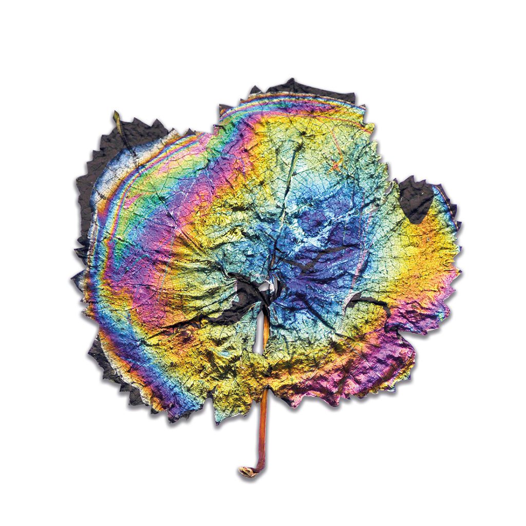 He exploits the duality of the phenomenon of iridescence, between magic and tragedy, to question the challenges of our time in a different way.